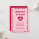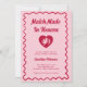 A hand-drawn, bold, and funky bridal shower invitation that blends vintage charm with modern flair. The design features a playful pink background framed by a wavy red outline, giving it a lively, retro vibe. The typography is fun, funky, and modern, with a nostalgic twist that makes the text pop in vibrant red. At the center, a heart motif with a cupid inside adds a whimsical, romantic touch, perfectly balancing elegance with cheeky charm.