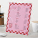 Retro Pink & Red Business Price List Pedestal Sign with trendy checkered background, bold fonts and modern layout. This groovy pink pricing menu table sign includes space for your price list of services, business name or logo and contact details - you can edit all text and colors to suit your brand. This fully editable feminine menu signage is perfect to use as a price list for your beauty salon, nail spa, makeup artist studio or any other professional services.