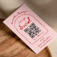 Retro Red Pink Handwritten Girly Whimsical QR Code Business Card