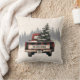 Retro Red Plaid Christmas Truck Custom Family Name Cushion