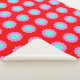 This vibrant and playful sherpa blanket features a fun pattern of mod 60s boho pop flowers in pink and turquoise on a red background.