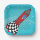 Retro Red Rocket Ship in Space Galactic Paper Plate