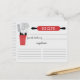 Fun retro bridal shower kitchen recipe cards featuring a red rolling pin & kitchen tools. The front of our recipe card offers room for a recipe title, from the kitchen of and ingredients space. Flip our recipe card over to view our lined back for recipe directions. Visit our shop for matching bridal shower invitations & recipe binders available in our shop in a large assortment of popular wedding shower colours. Perfect bridal shower invitation insert for a stock the kitchen bridal shower.