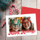 This fun and festive holiday photo card features a white background, one horizontal photo, retro script greeting, and modern typography. The back of the card has simple red and white dot pattern (you can also add another photo and/or additional text to the back). **All colors of this design are customizable by using the editor tool**