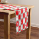 This Retro Red and White Starbursts Table Runner is so adorably space age you won’t be able to contain your enthusiasm. And, why would you want to? This 1960’s mid century modern inspired design features a dark heather grey background and rows of perfectly imperfect rectangles in cheery red, white, and dove grey. Kitschy white and red starbursts are placed in randomly selected rectangles. This mod pattern will make you feel like you jumped in a time machine and set the dial for irresistibly vintage!