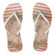 It's truly summer and beach time when you wear these ultra cool flip flops. The vintage look of the stripes and the bicycle pattern is reminiscent of the lazy days of summers past and all of that wonderful freedom!