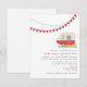 A wedding invitation featuring an illustration of a red vintage trailer with a window box full of daisies and black eyed susans. Red and grey bunting at top. Personalise the text.