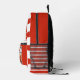 Red and white backpack featuring a retro striped design with polka dots and your custom photo (optional; you can also leave the landscape with red poppies if you like). Beautiful for travel or school.