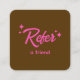 A super cute pink retro typogrpaghy and stars in brown background referral card great for anyone in the beauty or fashion industry. .For additional matching marketing materials, custom design or