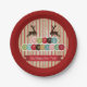Retro Reindeer Merry Christmas Happy New Year Paper Plate