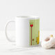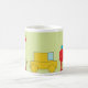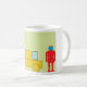 The colourful and detailed graphic is set against a sleek white ceramic mug, which not only captures the essence of retro charm but also adds a touch of modern elegance. The contrast of the vibrant red robot and the sunny yellow car against the white background is a visual delight that's sure to brighten up your mornings.