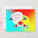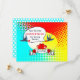 A fun and colourful 50's retro Rockabilly style save the date cards with roses, hearts, swallows and halftone pop art graphics. Ideal for couples who love the old fashioned styles and are looking for something a bit different different.