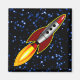 A retro 1940/50s style rocket blasts it's way into orbit, or maybe to the Moon or Mars. Perhaps in time to enjoy afternoon tea with the Martians. :)