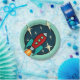 Cartoon rocket ship graphic illustration paper plate. Background colour can be customised.