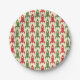 Retro Rockets Pattern in Christmas Red and Green Paper Plate