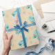 Retro Roller Skates Teal and Tan Patterned Wrapping Paper
