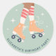 Retro Roller Skating Birthday Party Sage Green Classic Round Sticker