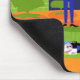 This Retro Romantic Evening Couple Mousepad looks like a scene out of a 1960's romantic comedy. The minimalist design features an attractive cartoon couple in the living room of a mid century modern, urban apartment. The room prominently features a green, stone wall with a floor to ceiling window with a view. Through the window, we can see the blue silhouette of a big city skyline. A crescent moon is just visible in the orange sky of sunset. The furnishings in the room include a green, lounge chair with matching footstool, a yellow, sputnik light fixture, and a turquoise, cone shaped fireplace, complete with roaring fire. In the centre of the orange flooring, there is a round, green shag rug. A portable, turquoise and black record player is placed on the rug. Next to the record player, a vinyl record can be seen poking out of a kitschy album cover. Also on the rug, there is a sleek, black cat wearing a teal collar. This fancy feline is sitting in front of a martini glass. Enjoying this scene, we have a very sophisticated couple. There is a suave man wearing a blue suit, light blue shirt and red tie. The tall, dark and handsome man is enjoying the company of an elegant blonde woman. The lovely lady is wearing a hot pink dress with a form fitting bodice and flared skirt. They are each holding a crystal martini glass with a floating olive. Cheers! Here's to the perfect evening at home!
