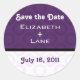 Modern and Stylish Retro Romantic Save the Date stickers in eggplant. These fun and funky stickers would make for a stylish way to let your friends and family know of your upcoming nuptials! Easy to customise, simply change the names and dates to reflect your own special day!