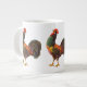 Art of a colourful retro rooster on a jumbo coffee mug. Click Customise it to add your name or messages, change background colours, even save your design for later.