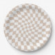 Retro Sand Rose Pink Pastel Warped Chequerboard Paper Plate