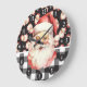 Retro Santa Claus Black And White Plaid Christmas Large Clock