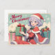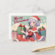 Capture the joy of the season with this retro-inspired Christmas card showing Santa Claus delivering gifts.