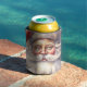 Can cooler with a vintage style illustration. A portrait of Santa with his big white beard wearing his classic traditional red Santa hat.