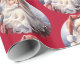 Wrapping paper with a vintage style illustration. A portrait of Santa with his big white beard wearing his classic traditional red Santa hat.