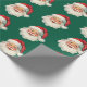 Retro Santa Face Christmas Green Wrapping Paper