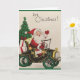 Vintage / Retro Christmas greeting card. Adorable Santa Claus delivering Christmas gifts in a Model T. It's Christmas!