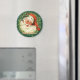The Retro Santa Magnet is a great way to show your holiday spirit--also makes a great gift! The retro design features Santa's face, surrounded by a wreath, on a dark green background. The text reads, "Merry Christmas." Customise the text as desired.