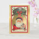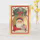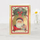 The front of this Holiday greeting card features a vintage image of an old fashioned Santa Claus holding up toys before leaving them for lucky children on Christmas eve. Above him is seasonal greenery tied up with a red bow. The image is placed on a light infused gold gradient background, and is bordered in red with a thin gold line.. The inside of the card has the gold background on the left, with the stylised gold text that says "Twas the Night before Christmas". The other side is white, and partially left blank for your own message, with custom text fields for your signature at the bottom. Celebrate Christmas the old fashioned way with this beautiful card showcasing an image from days gone by.