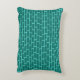 Welcome to Suburbia! This Retro Saturday Morning Accent Pillow features an attractive minimalist cartoon couple in their little corner of paradise. From the window of a turquoise and teal brick house, we can see Mrs. Homemaker. The beautiful redhead is wearing a hot pink frock. She is holding a pitcher of freshly squeezed lemonade in one hand. On the windowsill in front of her, there is a piping hot, homemade, lattice topped, fruit pie in a green pie plate. On the walkway, in front of the red door to the home, the rolled up Saturday morning newspaper is waiting to be read. Mr. Man of the House is standing on the lush green lawn. He is wearing a blue shorts and a yellow shirt that matches his wife's sunny disposition. He is standing behind a red lawnmower. We can see that he has already mowed a strip of grass, but, at this point, it's difficult to tell if he is working hard or hardly working. The mowing seems to be at a standstill while he enjoys a tangy glass of lemonade. Ah, refreshing! Beside the house, the family feline is perched on a white picket fence. Snowball, the ironically named black cat, is looking down on her loyal subjects and the orange and yellow flowers that border the fence row. The yellow sun is peeking from behind fluffy, light blue clouds. The sky is the shade of aqua reserved for Hometown, USA in kitschy, mid century modern artwork. The opposite side of this pillow features a teal and turquoise brick pattern.