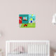 Welcome to Suburbia! This Retro Saturday Morning Poster features an attractive minimalist cartoon couple in their little corner of paradise. From the window of a turquoise and teal brick house, we can see Mrs. Homemaker. The beautiful redhead is wearing a hot pink frock. She is holding a pitcher of freshly squeezed lemonade in one hand. On the windowsill in front of her, there is a piping hot, homemade, lattice topped, fruit pie in a green pie plate. On the walkway, in front of the red door to the home, the rolled up Saturday morning newspaper is waiting to be read. Mr. Man of the House is standing on the lush green lawn. He is wearing a blue shorts and a yellow shirt that matches his wife's sunny disposition. He is standing behind a red lawnmower. We can see that he has already mowed a strip of grass, but, at this point, it's difficult to tell if he is working hard or hardly working. The mowing seems to be at a standstill while he enjoys a tangy glass of lemonade. Ah, refreshing! Beside the house, the family feline is perched on a white picket fence. Snowball, the ironically named black cat, is looking down on her loyal subjects and the orange and yellow flowers that border the fence row. The yellow sun is peeking from behind fluffy, light blue clouds. The sky is the shade of aqua reserved for Hometown, USA in kitschy, mid century modern artwork.