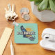 Fun fridge magnet features a retro style scenic graphic of Delaware's state silhouette on aqua background. Personalise on back with monogram or message.
