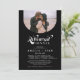 Let's celebrate our favourite couple's rehearsal night before the big day with this classic and elegant retro vintage calligraphy Rehearsal Dinner Script in white on black with an arched shape photo at the top. When retro meets modern touch.