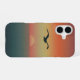 Stylized silhouette of a seagull flying over the sea in a soothing vintage mood.