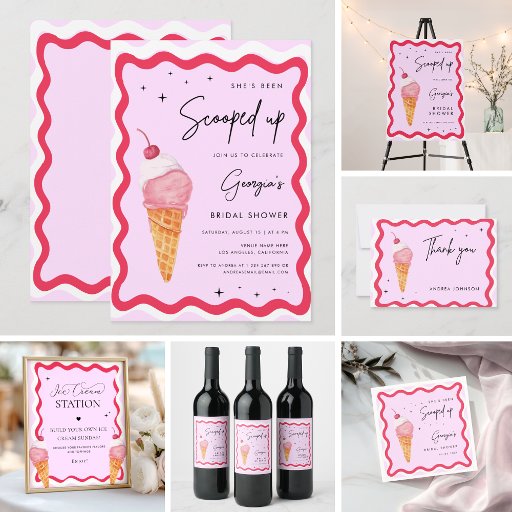This modern, stylish invitation, featuring red and pink wavy frames, watercolor ice-cream & custom text would make a wonderful addition to your bridal shower celebration! Easily add your details by clicking on the "personalise" option.