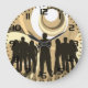 Bring vintage flair to your space with this wall clock showcasing a retro people silhouette and abstract circle artwork. Functional and stylish, this 1970s inspired design makes a great addition to living rooms, offices, or bedrooms. A perfect piece of wall decor for fans of bold retro art.