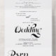 Elevate your wedding stationery with our all-in-one wedding invitation template featuring a charming retro font style! This elegant design features a sleek black script on a crisp white background, adding a touch of vintage sophistication to your celebration. The integrated layout includes an invitation, RSVP card, and details, making it both stylish and practical. Fully customisable, you can edit the colours and text to perfectly match your wedding theme. Impress your guests with a cohesive and professionally designed invitation set.