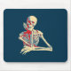 Happy smiling skeleton with his bony hand resting on his chin, done in retro colours.