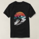 I give wanted to give this a 4 instead of a 5 because these Basic DARK T0shirts run unexpectedly SLIM or Narrow. Which is great if you do not have a potbelly, but I have a paunch. It isn't the shirt's fault that I've got a beer belly. The design and shirt itself is a quality cotton shirt. The color is more of a deep purple, but still a very pretty color. The Basic DARK T-shirts run a bit SLIMMER than the Basic Ts. The neck is a fraction narrower (or seems to be narrower) also. I'm a paunchy middle-aged woman and my neck is 12 inches (31cm) thick and the neckline fell about the same as in the photo of the man, and I had the desire to tug it a bit. So if you're a thick necked man or like loose shirts, be aware these are slimmer shirts. Once I get rid of my lockdown paunch it'll look great. The shirt washed well in cold water with no apparent bleeding. We don't have a dryer, so it hung dry. Did not shrink. Love the colors and the design. The design looks smaller on my shirt than it does on the model on-line. But still, it looks good on the shirt. The printing looks as it does on the model, just the size seems fractionally smaller. Washed garment in cold water, hung dry and design appeared unaffected.
