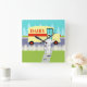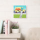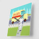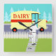 If you have a thirst for a mid century modern design, this Retro Small Town Milkman Acrylic Wall Clock is for you! The 1960's style, minimalist art design features a dedicated, milkman making his morning rounds. The blonde man is wearing milky white pants, shirt and hat with a black bow tie, belt and shoes. This delivery man of calcium and Vitamin D is walking up a front sidewalk, carrying a family's weekly supply of wholesome, fresh milk in glass bottles. The morning newspaper is still on the sidewalk. Don't worry. Only good news is allowed in this town! The sidewalk is surrounded by the type of green lawn only found in small towns and suburbia. There is also a white, picket fence. In the street, we see the milkman's sweet ride! It's a creamy yellow, milk truck with a red stripe on the side and red lettering that says, "DAIRY". On the opposite side of the street, we see an aqua sky and the light blue silhouettes of cedar trees. This kitschy cartoon looks like a scene out of an old television sitcom. Bring on the yellow cake with chocolate frosting--the official cake of all television housewives and their fortunate families! Building strong bones never tasted so good!