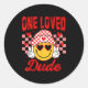 Retro Smile Face One Loved Dude Valentines Day Men Classic Round Sticker