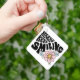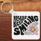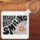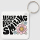Retro Smiley Face Flower Positive Quote Key Ring