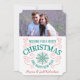 Your own photograph takes the top centre stage on this pretty retro style flat Holiday card. The text is in teal and soft red, with a snowflake image at the centre. Your signature is at the bottom. The back of the card is a pretty teal and white bokeh and snowflake abstract pattern. Simple and modern, but with a touch of nostalgia for Christmas past.