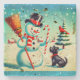 Retro Snowman, Cute Dog, Red Cardinal And Trees Stone Coaster