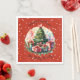 Retro Snowy Christmas Scene, Tree, Gifts, Napkin