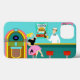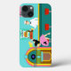 Serve up something special with this Retro Soda Fountain iPhone 6 Case. The minimalist art, cartoon drawing design features the interior of the coolest spot in town. It's a 1950's soda fountain, in all of its kitschy glory! Against the backdrop of an aqua wall, we can see posters advertising the specialities of the house. One poster shows a hamburger and bottle of pop for the bargain price of 15 cents. The other poster shows two scoops of ice cream in a sugar cone for a mere 5 cents. With prices like these, it must be difficult to watch your waistline! A most competent soda jerk is manning the teal counter with yellow accents. The young man with the strong work ethic is holding an ice cream cone with a single scoop of lemon yellow ice cream--although, to be fair, it could be pineapple! The clean-cut lad is wearing a pristine, white shirt with a black, bow tie and a white hat with red accents. On the opposite side of the counter, we see three red and chrome bar stools. Perched on one of the stools is a blonde teenybopper whose mouth is surely watering. It's unclear if her mouth is watering over the ice cream cone that is headed her way or the industrious young man who is serving it. She is wearing a pink poodle skirt and a form fitting black top. Her yellow locks are pulled back in a classic ponytail. Next to this cutie of a customer there is a colourful, classic jukebox, which features brown, wood grain, panelling and colourful neon lights. Better than that, it is sure to feature all of the greatest rock and roll hits of the time! The floor of this mid century modern ice cream parlour is an aqua and teal, chequerboard pattern that is just screaming for someone to try all of the latest dance moves.
